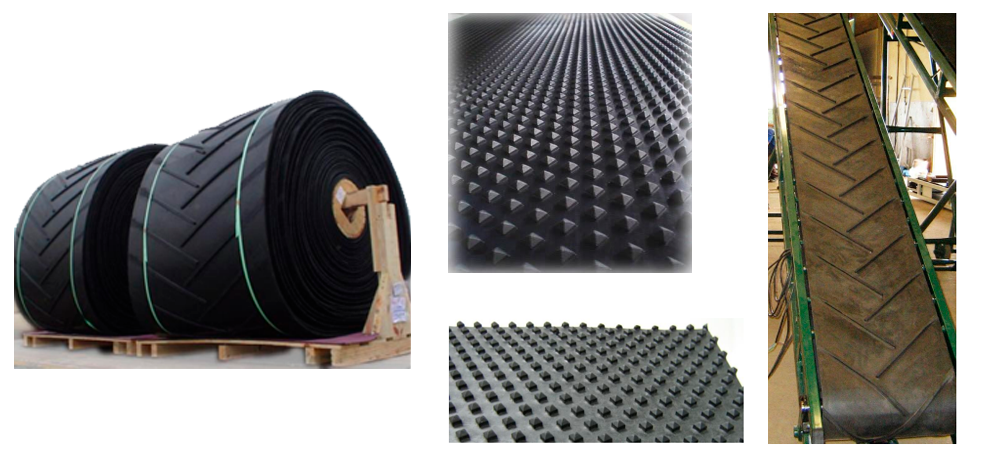 As correias com coberturas não lisas se destinam mais ao transporte de produtos em inclinações, que podem chegar à 45º, motivo pelo qual são fabricadas em distintos relevos.